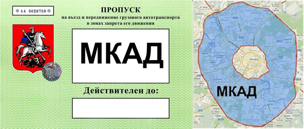 • пропуск на МКАД, который разрешает движение по Третьему транспортному кольцу (ТТК) с 22.00 до 7.00 и по МКАД круглосуточно;